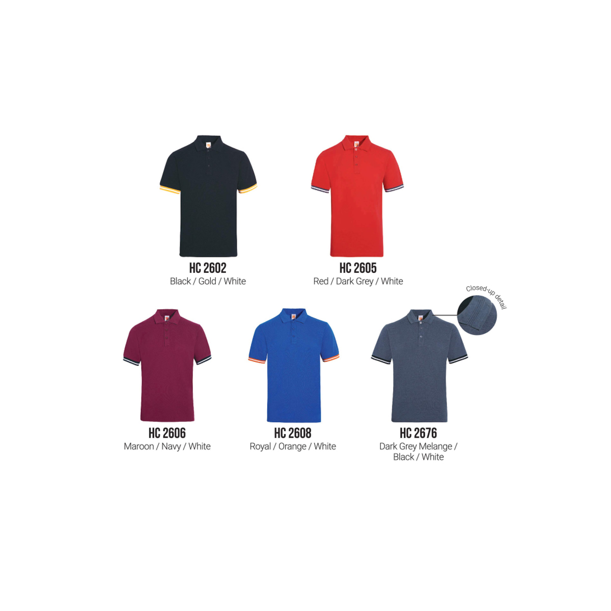 Color: Note us to select your color (Ex: HC2602 Black/ Gold/ White)